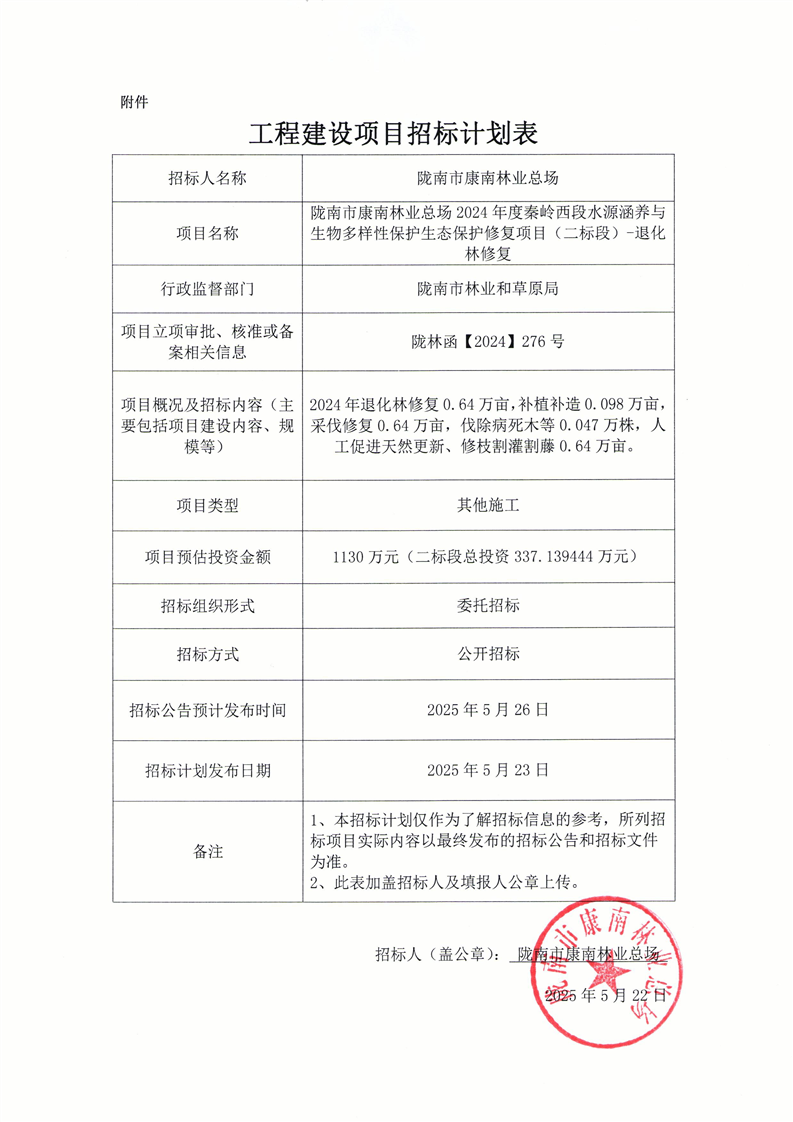 隴南市康南林業(yè)總場(chǎng)2024年度秦嶺西段水源涵養(yǎng)與生物多樣性保護(hù)生態(tài)保護(hù)修復(fù)項(xiàng)目(二標(biāo)段)-退化林修復(fù)