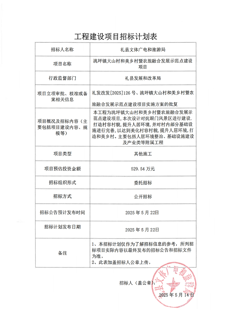 洮坪鎮(zhèn)大山村和美鄉(xiāng)村暨農(nóng)旅融合發(fā)展示范點建設項目
