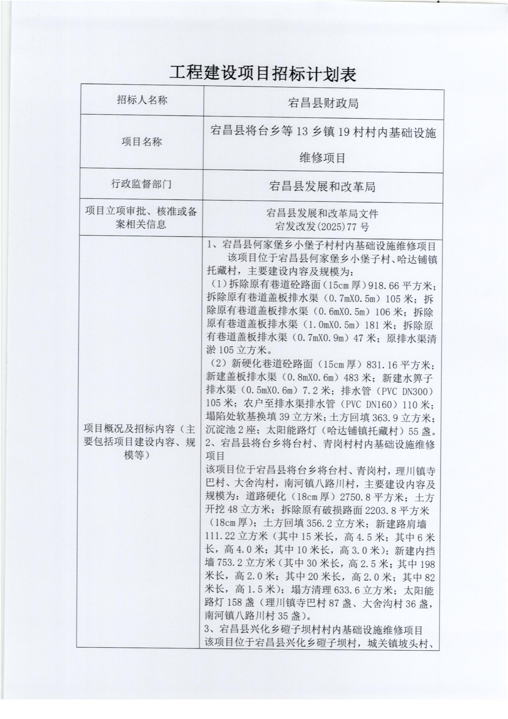 宕昌縣將臺(tái)鄉(xiāng)等13鄉(xiāng)鎮(zhèn)19村村內(nèi)基礎(chǔ)設(shè)施維修項(xiàng)目