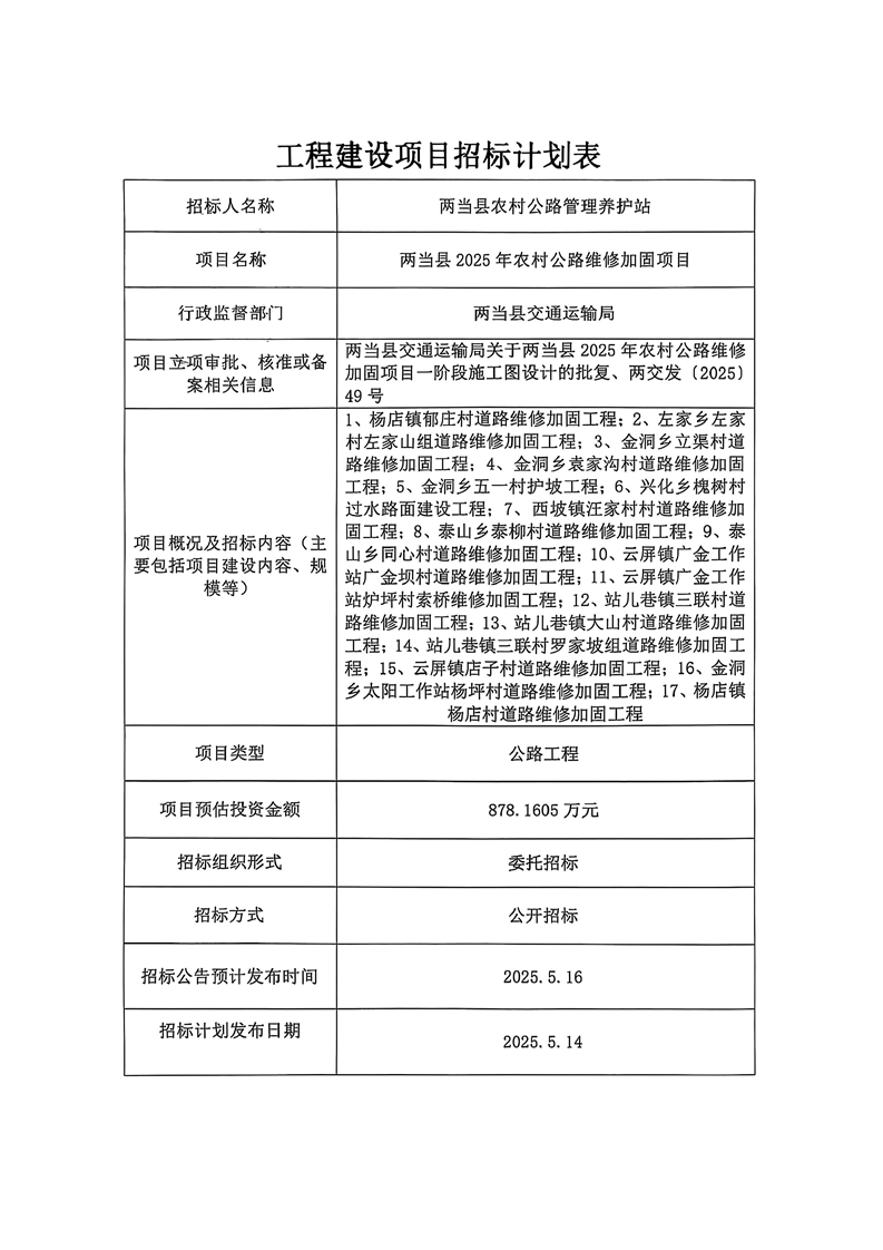 兩當(dāng)縣2025年農(nóng)村公路維修加固項目