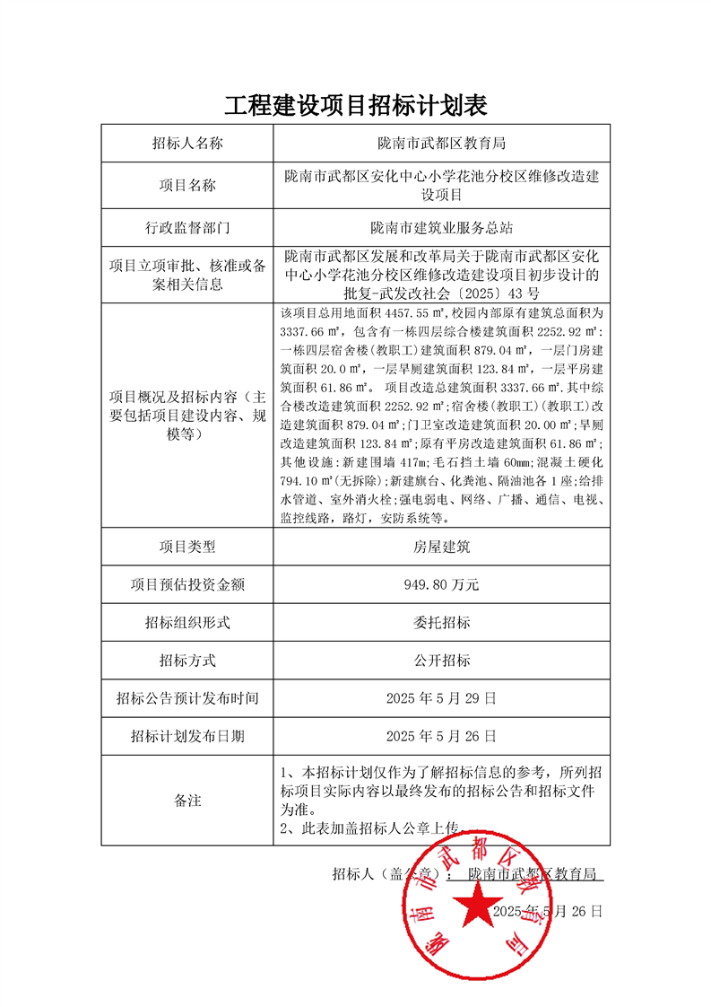 隴南市武都區(qū)安化中心小學(xué)花池分校區(qū)維修改造建設(shè)項(xiàng)目