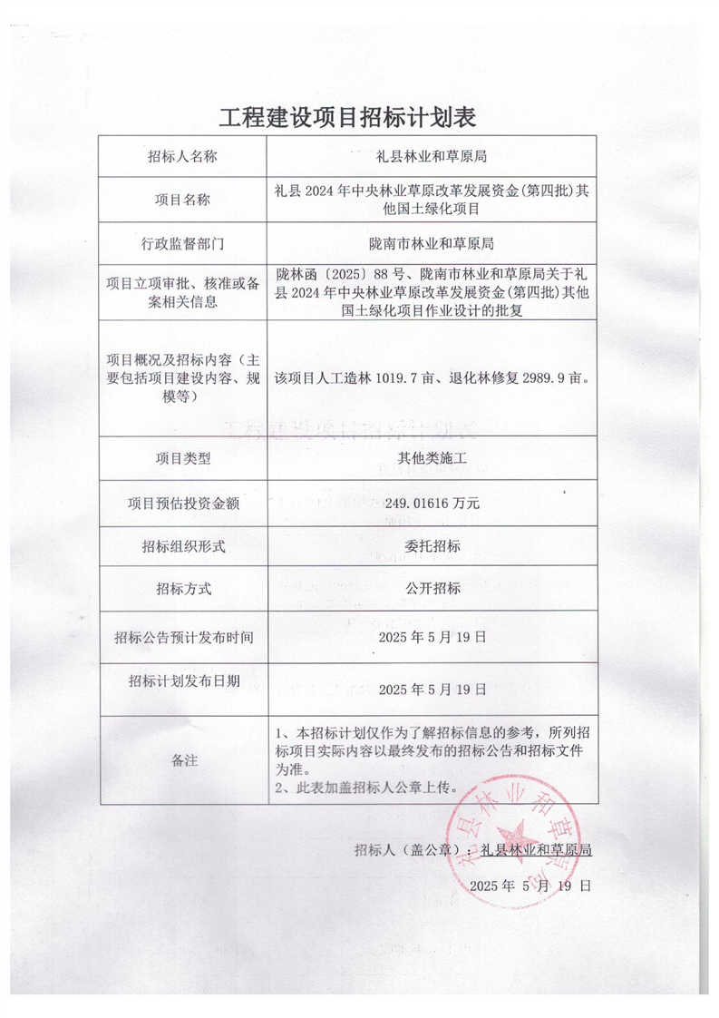禮縣2024年中央林業(yè)草原改革發(fā)展資金(第四批)其他國土綠化項(xiàng)目
