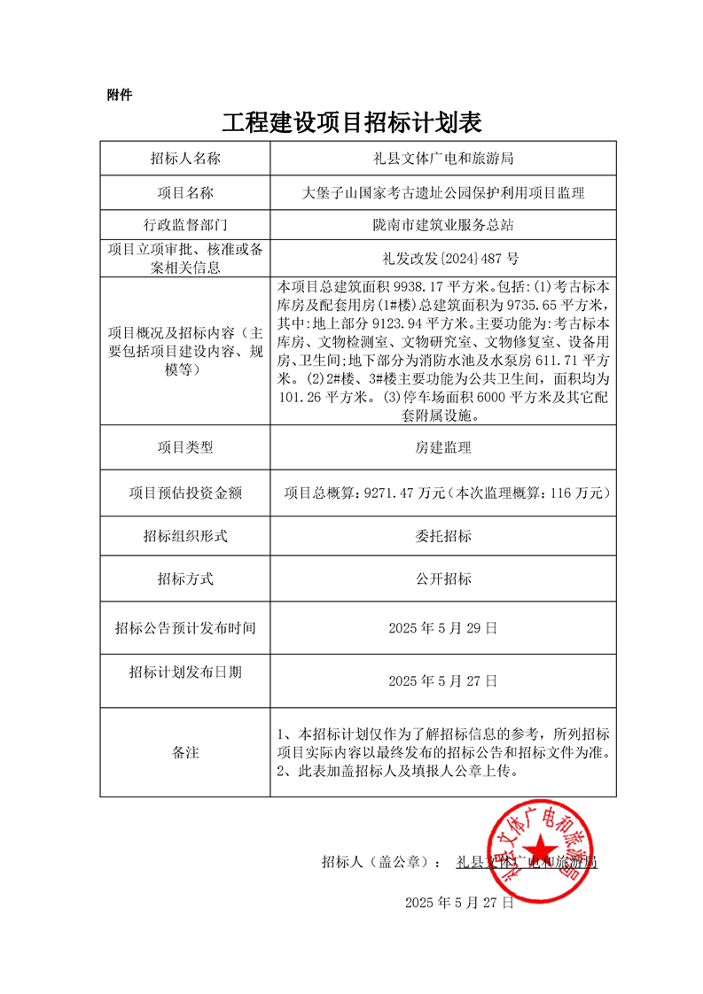 大堡子山國家考古遺址公園保護利用項目監(jiān)理
