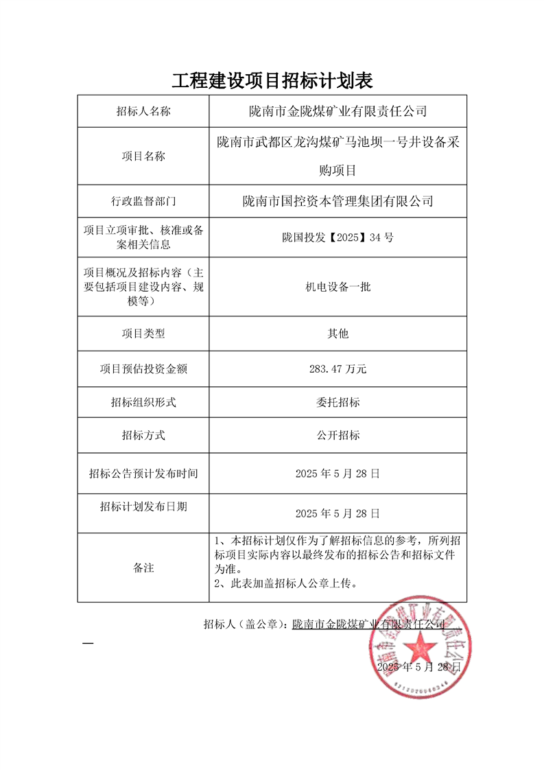 隴南市武都區(qū)龍溝煤礦馬池壩一號(hào)井設(shè)備采購(gòu)項(xiàng)目