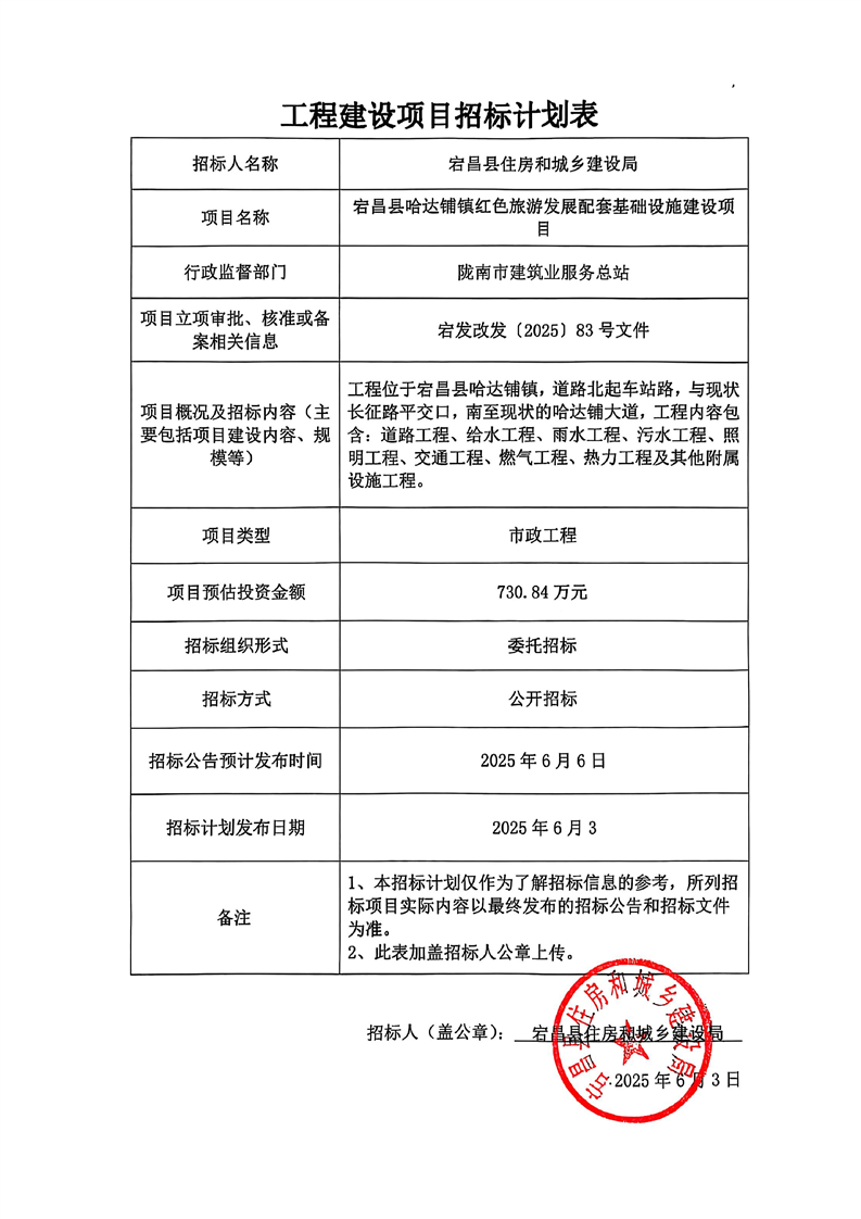 宕昌縣哈達鋪鎮(zhèn)紅色旅游發(fā)展配套基礎設施建設項目