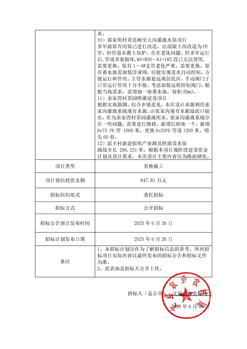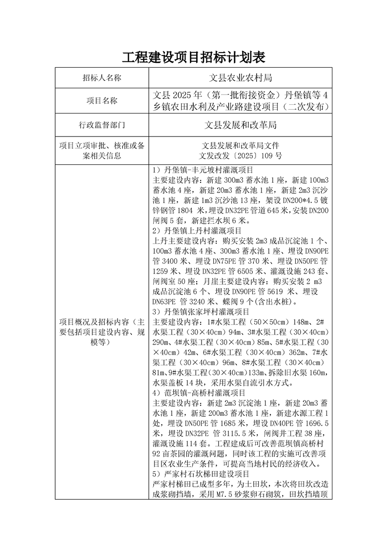 文縣2025年(第一批銜接資金)丹堡鎮(zhèn)等4鄉(xiāng)鎮(zhèn)農(nóng)田水利及產(chǎn)業(yè)路建設(shè)項目(二次發(fā)布)