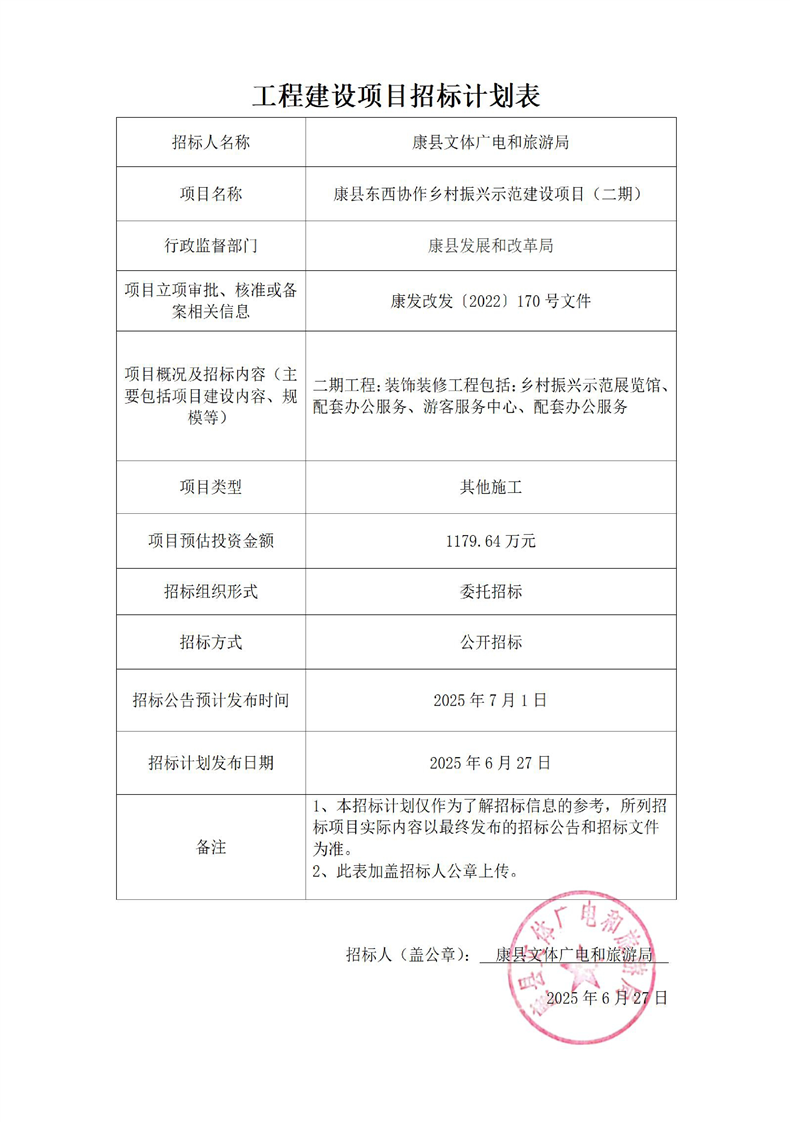 康縣東西協(xié)作鄉(xiāng)村振興示范建設(shè)項(xiàng)目(二期)