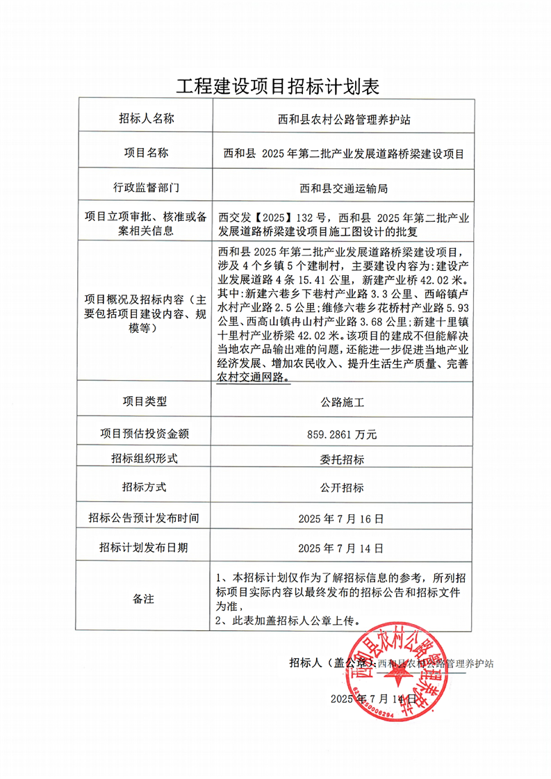 西和縣2025年第二批產業(yè)發(fā)展道路橋梁建設項目