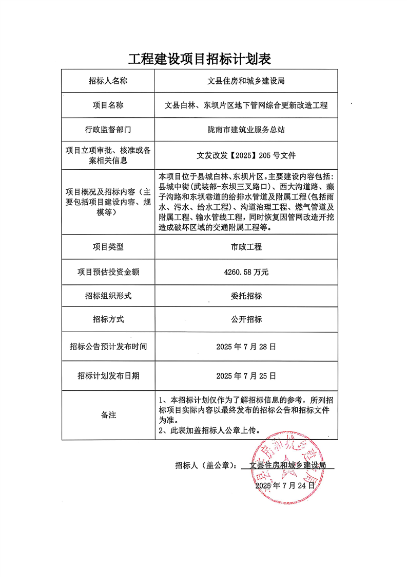 文縣白林、東壩片區(qū)地下管網(wǎng)綜合更新改造工程