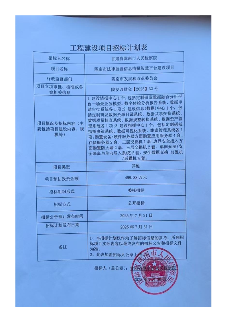 隴南市法律監(jiān)督信息情報智慧平臺建設(shè)項目