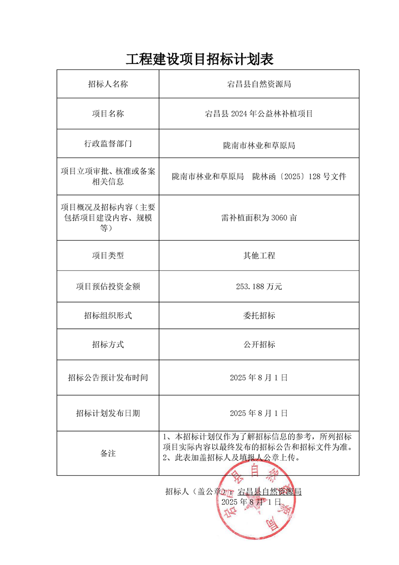 工程建設項目招標計劃表宕昌縣2024年公益林補植項目.pdf