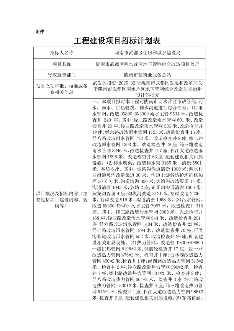 隴南市武都區(qū)兩水片區(qū)地下管網(wǎng)綜合改造項(xiàng)目監(jiān)理