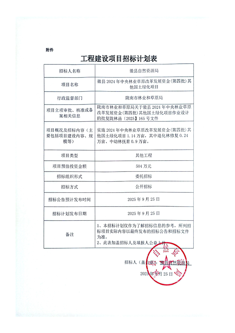 徽縣2024年中央林業(yè)草原改革發(fā)展資金(第四批)其他國土綠化項目