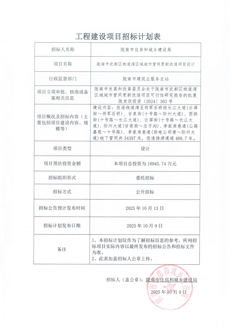 隴南市武都區(qū)棧道灣區(qū)域城市管網(wǎng)更新改造項目設(shè)計
