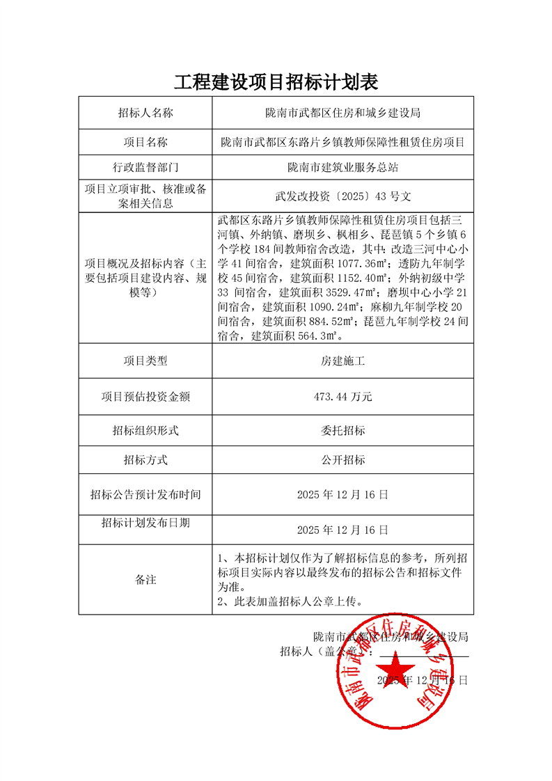 隴南市武都區(qū)東路片鄉(xiāng)鎮(zhèn)教師保障性租賃住房項(xiàng)目