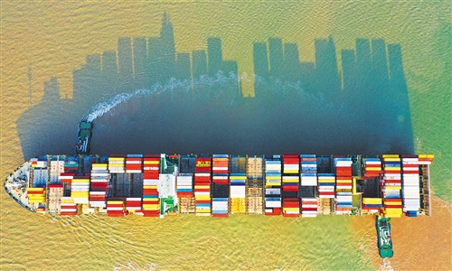 2019年,“中國(guó)號(hào)”巨輪在高質(zhì)量航道穩(wěn)健行進(jìn),前三季度國(guó)內(nèi)生產(chǎn)總值增長(zhǎng)6.2%,在全球經(jīng)濟(jì)總量1萬(wàn)億美元以上的經(jīng)濟(jì)體中增速最快。圖為一艘滿載集裝箱的貨輪緩緩駛離上海洋山深水港碼頭。計(jì)海新攝(中經(jīng)視覺(jué))