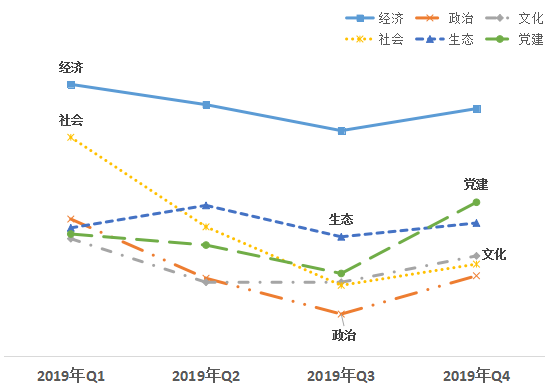 從領(lǐng)域來看,文化、政治領(lǐng)域改革熱度值偏低,黨建領(lǐng)域提升最多。第四季度,經(jīng)濟領(lǐng)域得分78.41,政治領(lǐng)域得分65.95,文化領(lǐng)域得分67.43,社會領(lǐng)域得分66.82,生態(tài)領(lǐng)域得分69.89,黨建領(lǐng)域得分71.43。