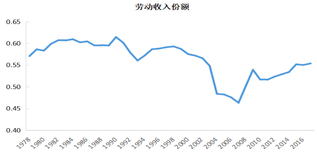 一是提高勞動報酬占比。我國在經(jīng)濟高速發(fā)展過程中,勞動所得占比曾出現(xiàn)一定程度的下降,2008年之后有所回升,但仍然偏低。