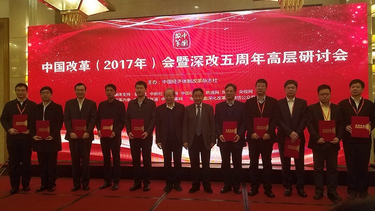 2018年1月13日上午9時(shí),由中國(guó)經(jīng)濟(jì)體制改革雜志社主辦的“貫徹黨的十九大會(huì)議精神 推進(jìn)全面深化改革取得更大成功——中國(guó)改革(2017)年會(huì)暨深改五周年高層研討會(huì)”在北京西苑飯店隆重召開(kāi)。研討會(huì)開(kāi)幕式上,主辦單位揭曉了“2017中國(guó)改革年度案例單位”名單。