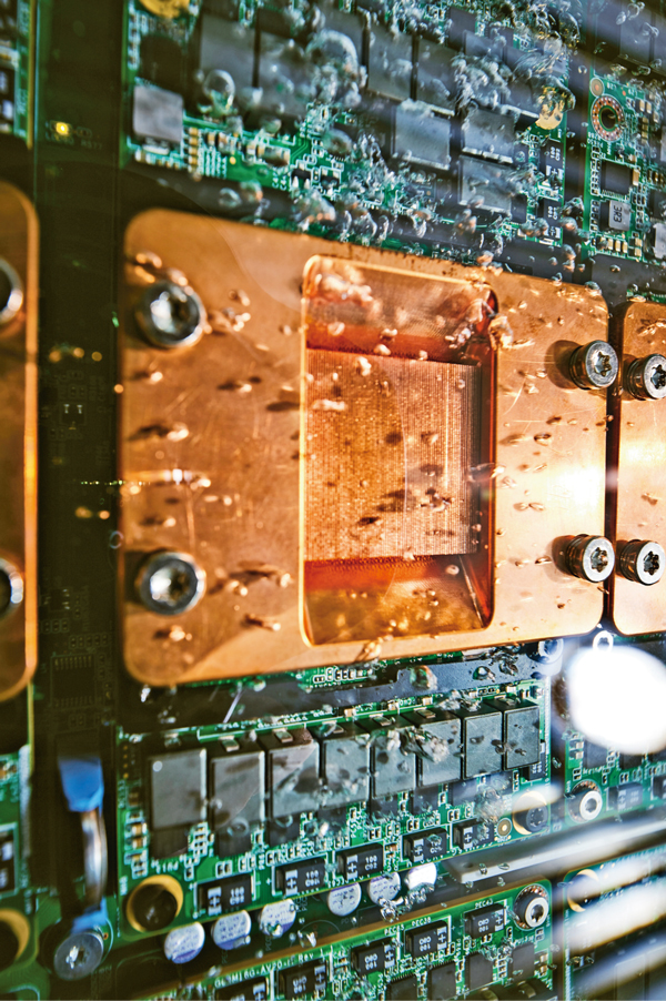 數(shù)字經(jīng)濟(jì)對(duì)經(jīng)濟(jì)社會(huì)的引領(lǐng)帶動(dòng)作用日益凸顯。圖為2021年11月拍攝的液冷計(jì)算節(jié)點(diǎn),能夠?qū)?shù)據(jù)中心能效比PUE降至1.1以下,比傳統(tǒng)風(fēng)冷技術(shù)節(jié)電20%?!≈袊?guó)科學(xué)院供圖