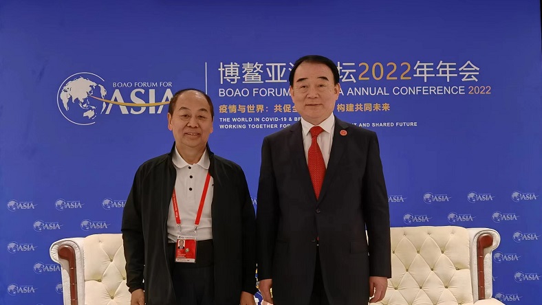 4月22日下午,岀席博鰲亞洲論壇2022年年會的我會常務副會長兼秘書長趙艾,應約與博鰲亞洲論壇秘書長李保東在博鰲亞洲論壇國際會議中心會談,就我會與博鰲亞洲論壇秘書處合作開展改革開放重大問題研究及組織相關學術交流活動等交換意見。