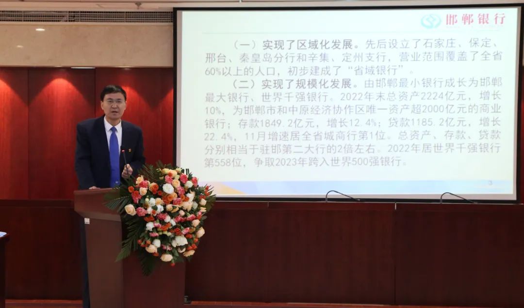 鄭志瑛董事長在題為《邯鄲銀行金融服務創(chuàng)新的思考與實踐》的主題演講中首先介紹了邯鄲銀行區(qū)域化、規(guī)模化、高效化、集團化、品牌化發(fā)展的基本情況,然后重點介紹了邯鄲銀行的服務實體經(jīng)濟十大創(chuàng)新:一是改變銀行治理“三會一層”崇拜,堅持“黨管銀行”;二是摒棄銀行“特殊企業(yè)論”,回歸普通服務企業(yè)的本質(zhì);三是提升服務效率,創(chuàng)建“快樂銀行”;四是破除“中間收入崇拜”,創(chuàng)建“免費銀行”;五是延長營業(yè)時間,創(chuàng)建“夜間銀行”;六是扭轉(zhuǎn)高投訴現(xiàn)狀,創(chuàng)建“優(yōu)服銀行”;七是改善服務和風控手段,創(chuàng)建“智慧銀行”;八是改變銀行“非現(xiàn)化”現(xiàn)象,創(chuàng)建“現(xiàn)金銀行”;九是轉(zhuǎn)變過度注重自身經(jīng)濟效益的理念,創(chuàng)建“公益銀行”;十是嚴管“四項權(quán)利”,創(chuàng)建“廉潔銀行”。