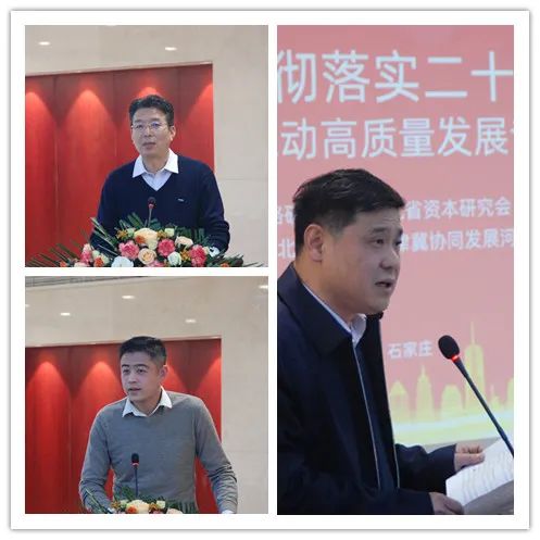 中國商業(yè)經(jīng)濟學會副會長、河北省改革戰(zhàn)略研究會顧問、河北經(jīng)貿(mào)大學原校長紀良綱,河北省資本研究會會長、杰明投資董事長李月分別發(fā)表致辭,中國經(jīng)濟體制改革研究會副會長、河北省改革戰(zhàn)略研究會會長劉萬玲致辭并作主旨演講,河北資本研究會首席經(jīng)濟學家、河北省商務廳原巡視員史玉強從外地發(fā)來書面致辭。河北省改革戰(zhàn)略研究會副會長、河北經(jīng)貿(mào)大學副校長田學斌教授,邯鄲銀行黨委書記、董事長鄭志瑛教授,河北省宏觀經(jīng)濟研究院副院長高智研究員,河北經(jīng)貿(mào)大學金融學院院長王重潤教授分別作主題演講。河北省改革戰(zhàn)略研究會副會長、河北省社科院創(chuàng)新驅(qū)動發(fā)展研究中心主任顏廷標研究員主持研討會。會議期間還舉辦了新書發(fā)布、銀企對接活動。參加會議的還有河北省改革戰(zhàn)略研究會特邀高級專家、河北冀廣傳媒集團公司原董事長趙華茂,河北省改革戰(zhàn)略研究會副會長馮文斌 ,經(jīng)貿(mào)橋聯(lián)合創(chuàng)始人、省校企合作促進會執(zhí)行會長張曉軍,河北省資本研究會副會長、河北省軍民兩用技術(shù)交易中心主任周天易,邯鄲銀行石家莊分行行長常志英,河北省資本研究會秘書長韓峰,河北省改革戰(zhàn)略研究會秘書長李文正等。省內(nèi)經(jīng)濟界知名學者、行業(yè)專家和企業(yè)代表等30余人出席會議。