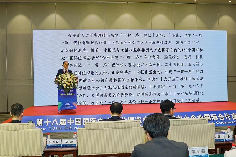 趙艾講到,今年是習近平主席提出共建“一帶一路”倡議十周年。十年來,共建“一帶一路”倡議得到包括非洲在內(nèi)的國際社會廣泛認同和熱情參與,取得了實打?qū)?、沉甸甸的成就。中共二十大開啟了推進中國式現(xiàn)代化,全面建設(shè)社會主義現(xiàn)代化國家的新征程。中非共建“一帶一路”也進入了深化務(wù)實合作,實現(xiàn)共贏發(fā)展的新階段。這種新形勢為中非中小企業(yè)拓展國際化互利合作空間,在推進“一帶一路”建設(shè)中進一步發(fā)揮重要作用提供了新機遇。