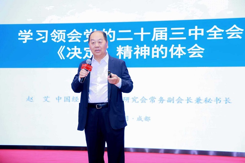 趙艾談到,黨的二十屆三中全會是在新時代新征程進(jìn)一步全面深化改革開放,推進(jìn)中國式現(xiàn)代化關(guān)鍵時期召開的一次十分重要的會議,全會審議通過了《中共中央關(guān)于進(jìn)一步全面深化改革、推進(jìn)中國式現(xiàn)代化的決定》,提出了60條300多項重點改革舉措,內(nèi)容豐富、分量很重、成色十足?!稕Q定》對于繼續(xù)完善和發(fā)展中國特色社會主義制度,推進(jìn)國家治理體系和治理能力現(xiàn)代化,到2035年全面建成高水平社會主義市場經(jīng)濟(jì)體制,中國特色社會主義制度更加完善,基本實現(xiàn)國家治理體系和治理能力現(xiàn)代化,基本實現(xiàn)社會主義現(xiàn)代化,為到本世紀(jì)中葉全面建成社會主義現(xiàn)代化強(qiáng)國具有十分重要的意義。成都高新區(qū)在全面深化改革開放,以科技創(chuàng)新為引領(lǐng),因地制宜發(fā)展新質(zhì)生產(chǎn)力,激發(fā)高質(zhì)量發(fā)展內(nèi)生動力,推動產(chǎn)業(yè)結(jié)構(gòu)優(yōu)化升級等方面,積累了一系列可圈可點的經(jīng)驗和做法,取得了一系列的亮眼成績。希望成都高新區(qū)百尺桿頭,再接再厲,按照黨的二十屆三中全會的精神,進(jìn)一步深化體制機(jī)制改革創(chuàng)新,以新質(zhì)生產(chǎn)力發(fā)展為引擎,推動高質(zhì)量發(fā)展等方面取得更優(yōu)異的成績。中國經(jīng)濟(jì)體制改革研究會十分樂意與成都高新區(qū)就體制機(jī)制改革創(chuàng)新的重大問題開展合作研究。