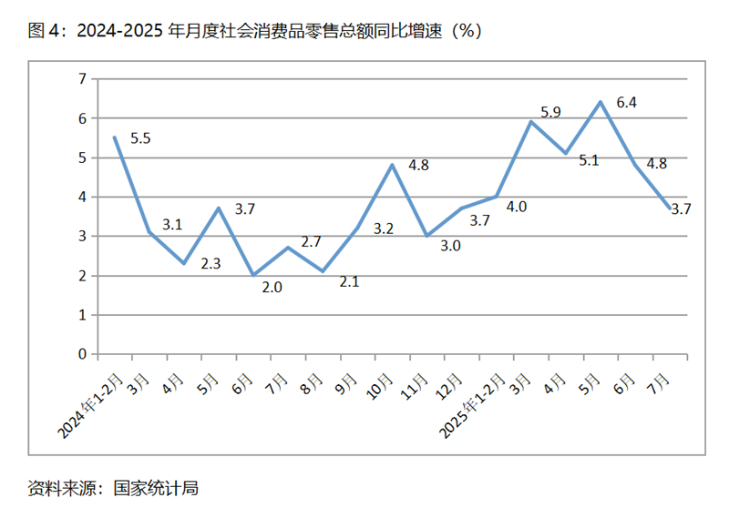 7月份,出口和廣義貨幣供應(yīng)量增速比6月份回升,工業(yè)、零售、投資和居民消費(fèi)價(jià)格增速或漲幅回落。這些變化反映出宏觀調(diào)控政策力度仍在加大,應(yīng)對(duì)復(fù)雜困難的國(guó)際環(huán)境取得的積極效果繼續(xù)顯現(xiàn),但整體經(jīng)濟(jì)運(yùn)行減弱的苗頭,特別是消費(fèi)增速的持續(xù)回落,投資增速的明顯回落,需要引起宏觀調(diào)控政策的高度重視。下階段宏觀調(diào)控政策,既要保持在力度上與上半年的銜接,保持政策的連續(xù)性穩(wěn)定性,又要針對(duì)新問(wèn)題及時(shí)出臺(tái)新的政策,加大調(diào)控的力度政策的強(qiáng)度,以確保國(guó)民經(jīng)濟(jì)的平穩(wěn)運(yùn)行。