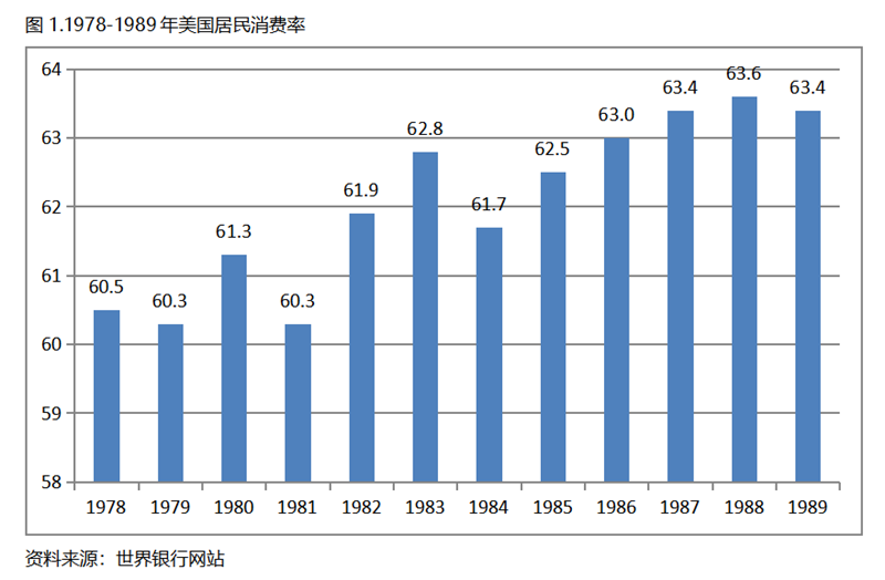 美國是1978年人均GDP超過1萬美元的,在1978-1989年的12年期間(選擇12個(gè)年份目的是與“十五五”時(shí)間跨度相對應(yīng),下同),居民消費(fèi)率雖然有波動,但總體是在高位上呈現(xiàn)出提高的走勢,1989年比1978年提高了2.9個(gè)百分點(diǎn)。