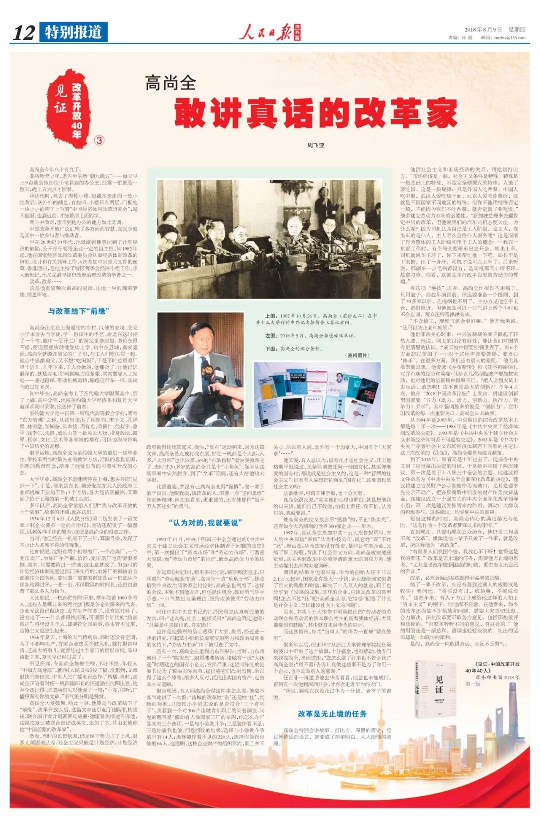 所見(jiàn)所聞,令高尚全如鯁在喉,不吐不快。年輕人“不知天高地厚”,就向《人民日?qǐng)?bào)》投了稿。沒(méi)想到,文章很快刊登出來(lái),中央人民廣播電臺(tái)還作了轉(zhuǎn)播。當(dāng)時(shí),高尚全正陪著時(shí)任一機(jī)部副部長(zhǎng)的汪道涵在沈陽(yáng)出差。他至今還記得,汪道涵扭頭對(duì)他說(shuō)了一句:“小高,你聽(tīng),廣播里面有你的文章?!闭Z(yǔ)氣里分明是贊賞。